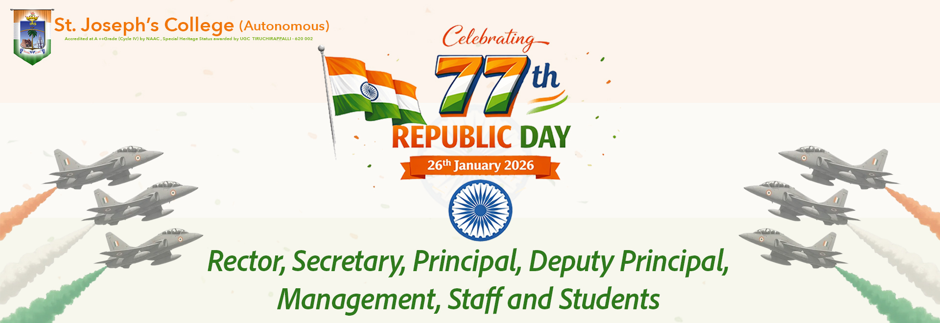 St. Joseph's College has geared up to various status for its Excellence in the field of Higher Education...